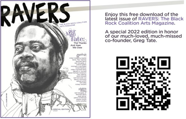 For the Special Edition of RAVERS, Our Man Tate Issue, scroll below or click here: Black Rock Coalition Arts Magazine (download